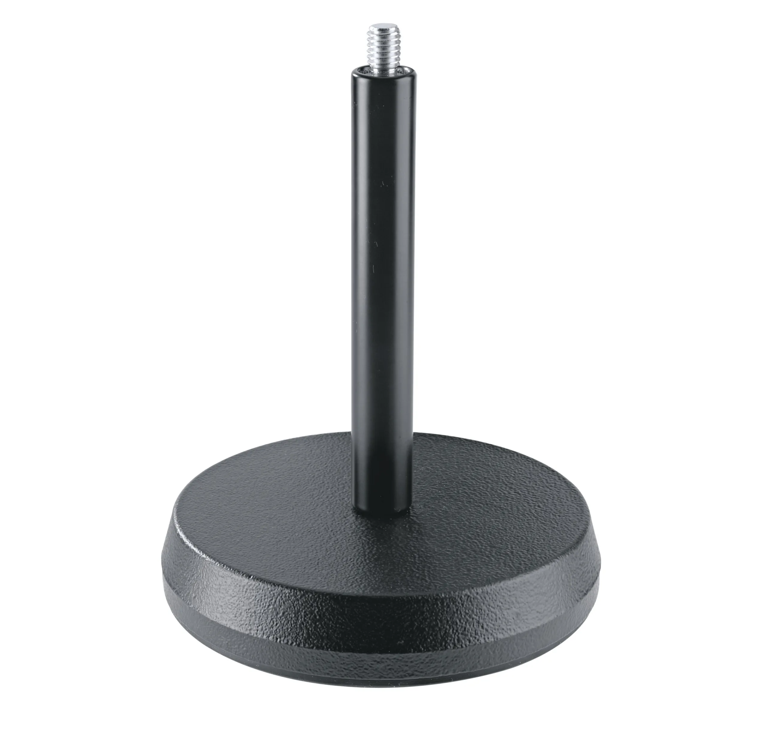 Sound-absorbing cast-iron base with black powder-coated screw-in rod, 3/8″ thread.